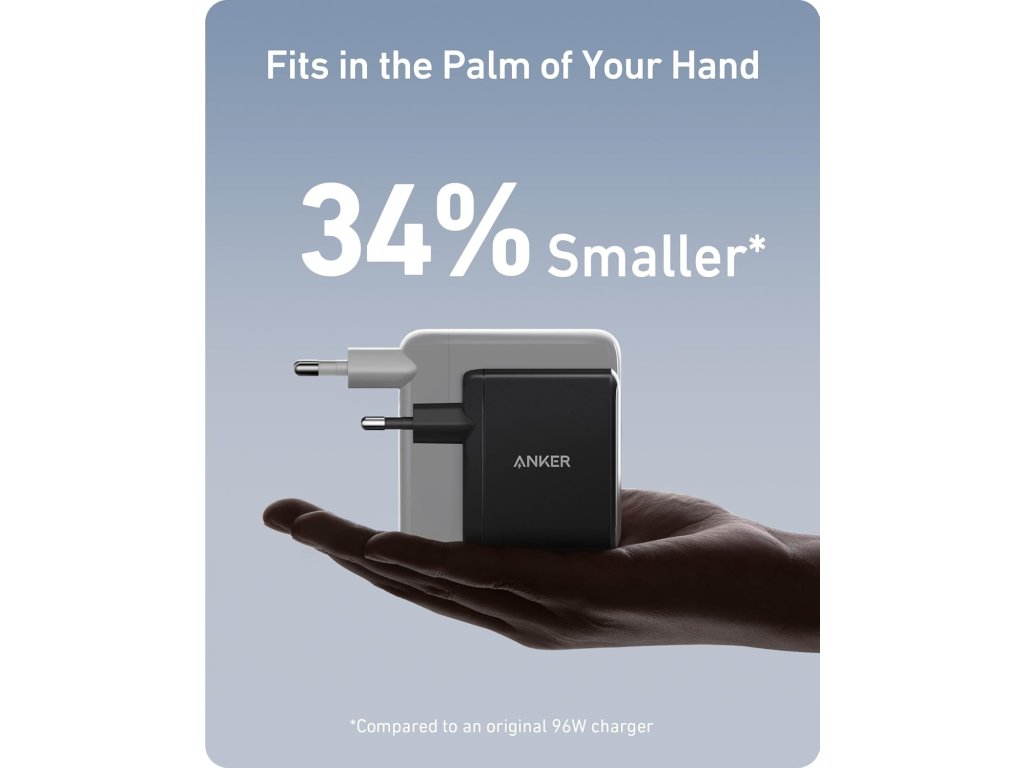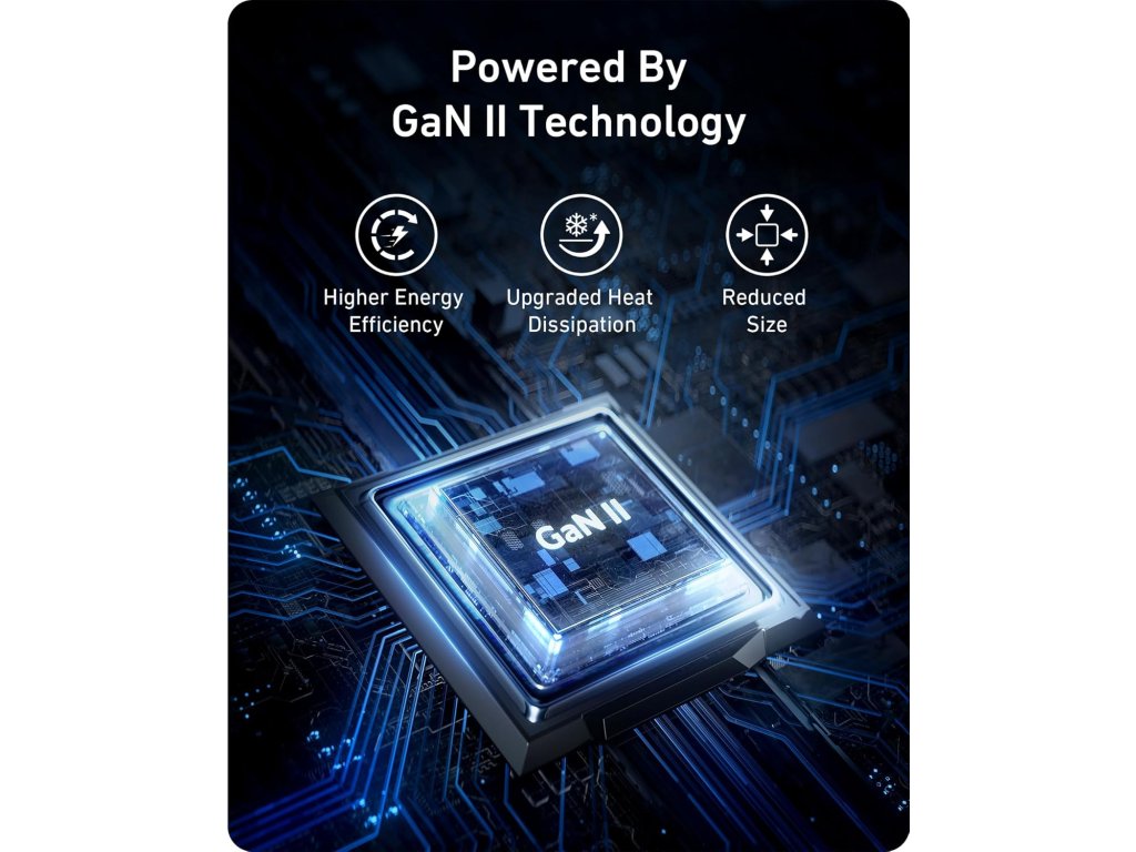Napájeno technologií GaN II: Díky 100% zvýšení provozní frekvence, inovativnímu vrstvenému designu a vylepšené struktuře desek plošných spojů je technologie GaN II je tato nejnovější nabíječka lehčí, kompaktnější a menší – to vše se stejným výkonem!
