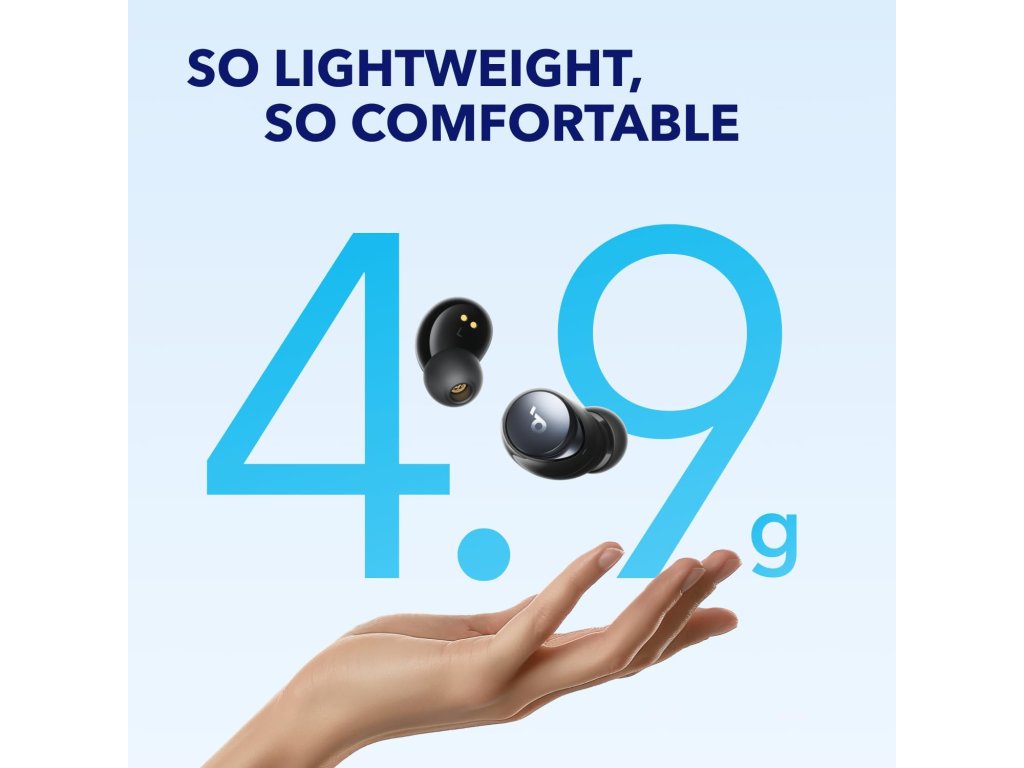 Pohodlné, bez ohledu na to, jak dlouho posloucháte: Bezdrátová sluchátka Space A40 s potlačením hluku jsou menší než všechna ostatní sluchátka Soundcore ANC, lehká jako list papíru a mají ergonomický tvar, takže pohodlně padnou do uší.