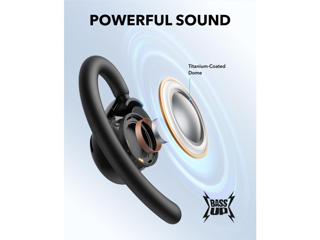 - Výkonné basy s 16mm měniči: Zažijte bohaté, znělé basy generované vysoce vyvinutými 16mm měniči s jejich titanovými membránami a vlastní technologií BassUp společnosti Soundcore.