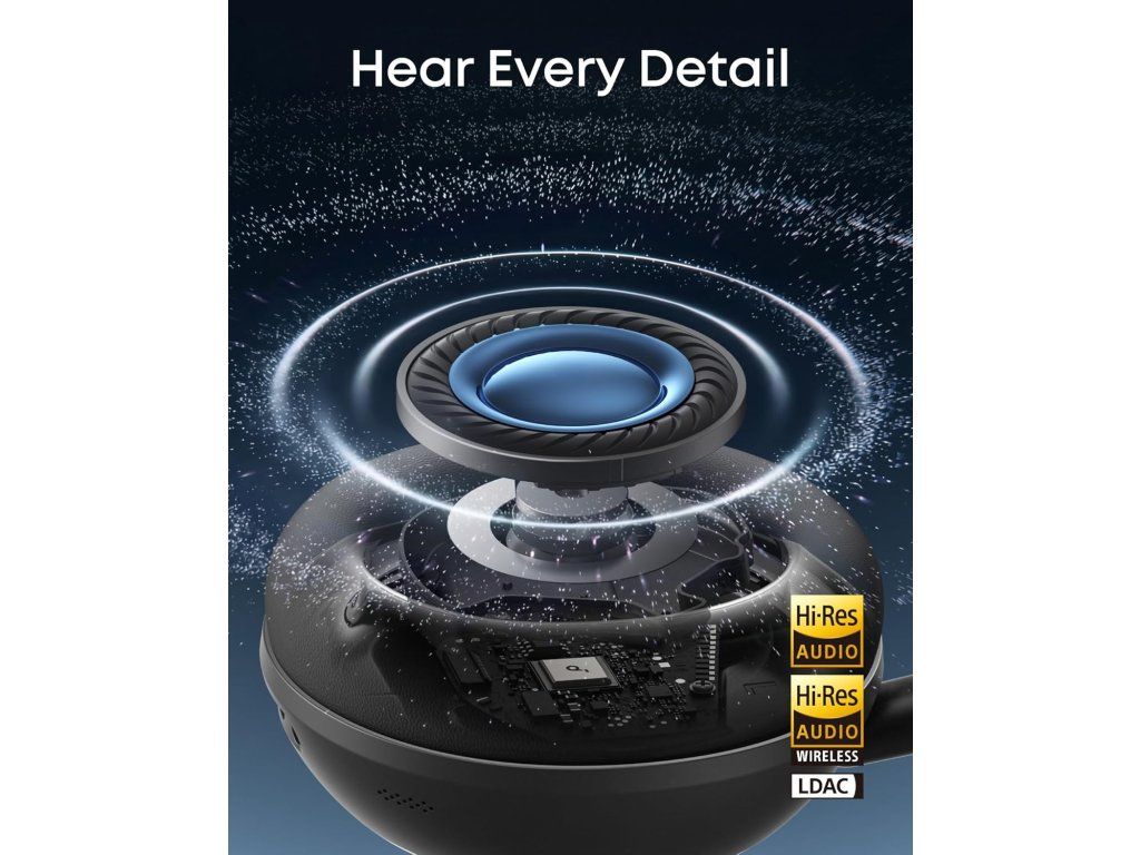 - Poslouchejte každý detail: 40mm dvouvrstvé měniče poskytují čistý zvuk s brilantními výškami a silnými basy – pro působivý HiFi zážitek. Podporuje Hi-Res Audio přes kabel a LDAC bez kabelu.