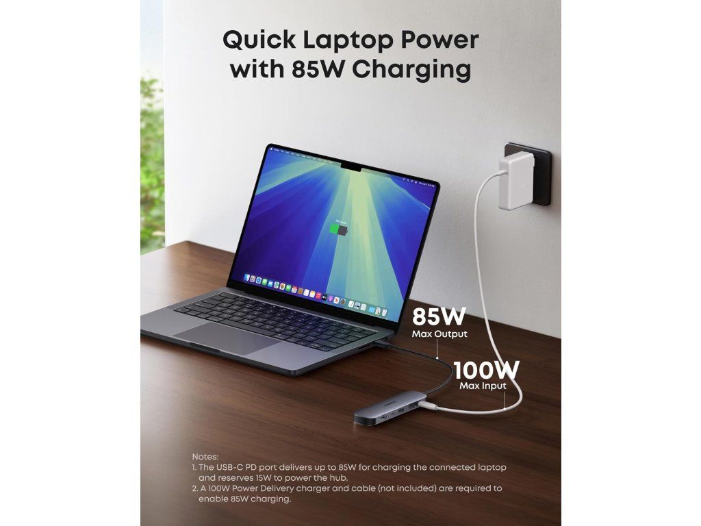- Spolehlivé rychlé nabíjení s 85 W: Nabijte svůj notebook výkonem až 85 W – rychle, efektivně a perfektní pro každodenní mobilní práci.