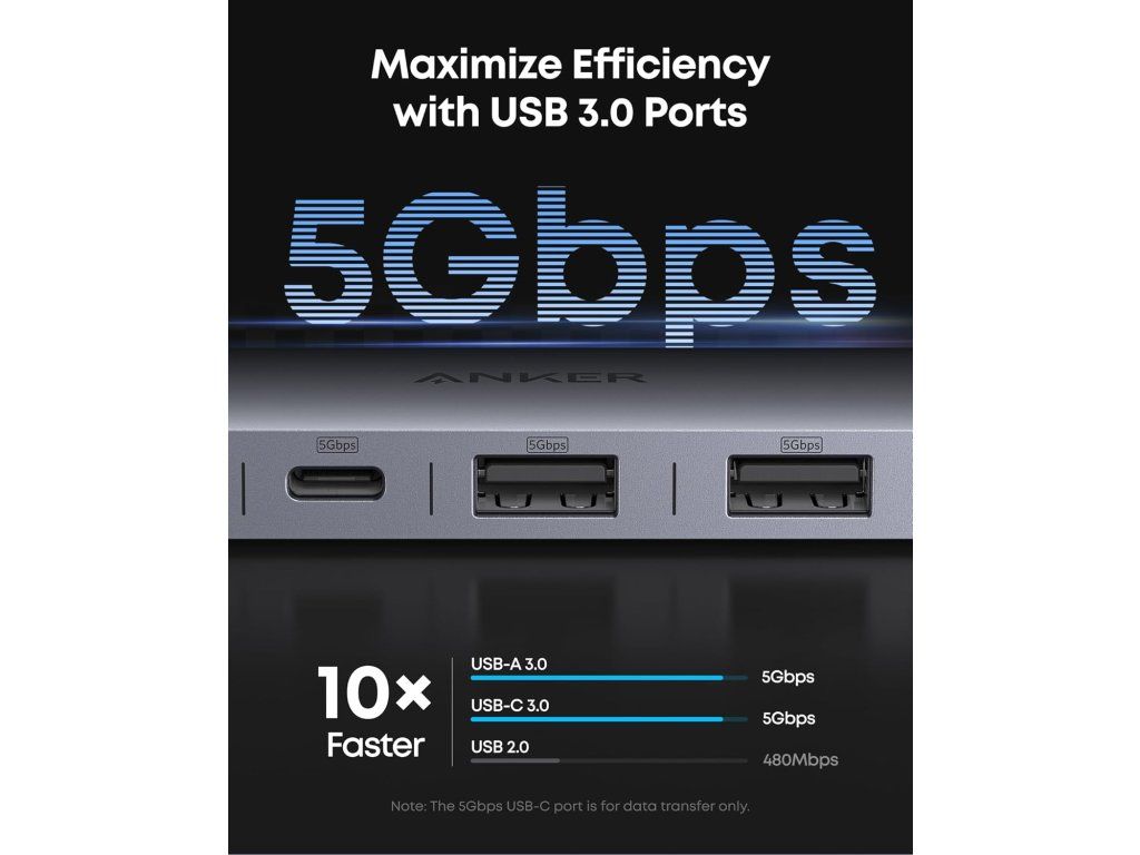 - Efektivita ve dvojitém balení: Dva porty USB-A 3.0 a datový port USB-C umožňují přenosy rychlostí 5 Gb/s – pro výrazně rychlejší přenosy souborů a vyšší produktivitu.