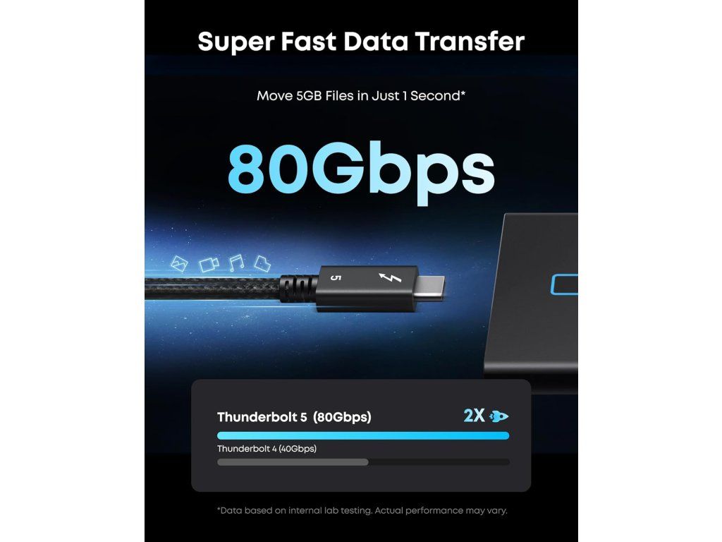 - Bleskově rychlý přenos souborů: Přeneste 5 GB souborů za pouhou jednu sekundu – díky nejnovější technologii 80 Gb/s.
